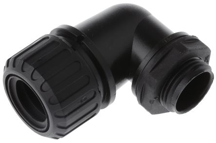 Adaptaflex 90° Elbow Cable Conduit Fitting, Nylon 66 Black 21mm nominal size IP66, IP67, IP68, IP69K M20 [ASF21/M20/90]; 613-993