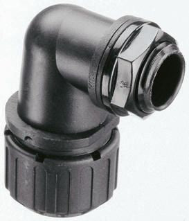 Adaptaflex 90° Elbow Cable Conduit Fitting, Nylon 66 Black 21mm nominal size IP66, IP67, IP68, IP69K PG16 [ASF21/PG16/90 & AWB21]; 320-3909