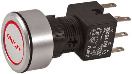 2-pole on-off switch Latching Push Button Switch, Panel Mount, ON / OFF [A1PCA1X236J103]; 691-5276