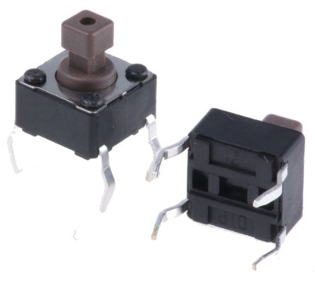 Brown Button Tactile Switch, Single Pole Single Throw (SPST) 50 mA @ 12 V dc 3.8mm [DTS644NV]; 378-6505