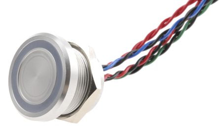 Illuminated Wire Lead Piezo Switch, , IP68, 200 mA@ 24 V dc, Single Pole Single Throw (SPST), -40 → +75°C [PBARZAF0000C3A]; 691-9575