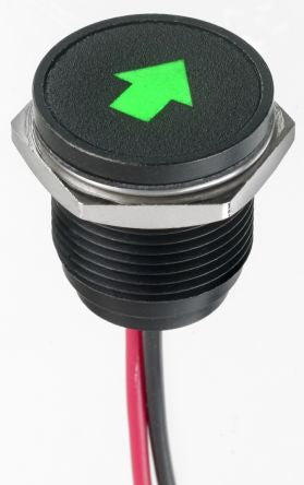 Apem Green Indicator, 12 V dc, 16mm Mounting Hole Size, Lead Wires Termination, IP67 [Q16F5BXXHG12E-3K6]; 121-3308