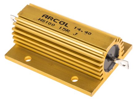 Arcol HS100 Series Aluminium Housed Axial Wire Wound Panel Mount Resistor, 15Ω ±5% 100W [HS100 15R J]; 166-3825