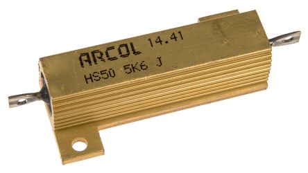 Arcol HS50 Series Aluminium Housed Axial Wire Wound Panel Mount Resistor, 5.6kΩ ±5% 50W [HS50 5K6 J]; 252-2877