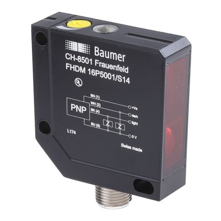 Baumer Diffuse Photoelectric Sensor 20 → 450 mm Detection Range PNP IP67 Block Style FHDM 16P5001/S14 [FHDM 16P5001/S14]; 185-2212
