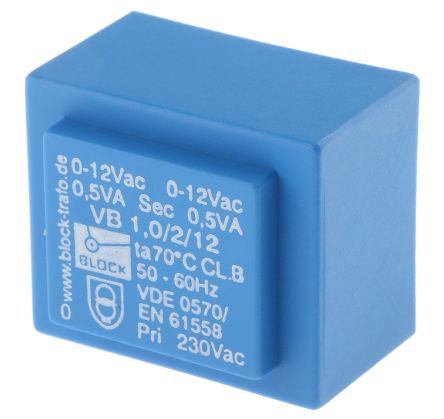 12V ac 2 Output Through Hole PCB Transformer, 1VA [VB 1.0/2/12]; 161-7813