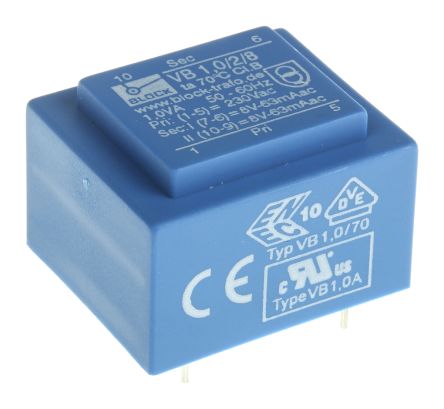 8V ac 2 Output Through Hole PCB Transformer, 1VA [VB 1.0/2/8]; 170-7414
