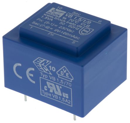 9V ac 1 Output Through Hole PCB Transformer, 1.5VA [VB 1,5/1/9]; 732-0342