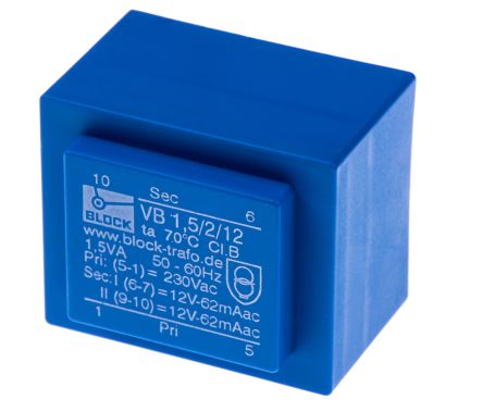 12V ac 2 Output Through Hole PCB Transformer, 1.5VA [VB 1.5/2/12]; 170-7436