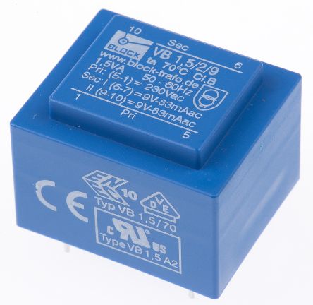 9V ac 2 Output Through Hole PCB Transformer, 1.5VA [VB 1.5/2/9]; 347-3394