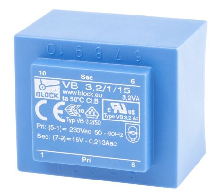 15V ac 1 Output Through Hole PCB Transformer, 3.2VA [VB 3,2/1/15]; 732-0402