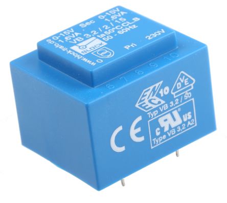 15V ac 2 Output Through Hole PCB Transformer, 3.2VA [VB 3.2/2/15]; 161-7801