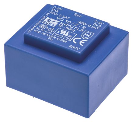 9V ac 2 Output Through Hole PCB Transformer, 10VA [VC 10/2/9]; 170-7419