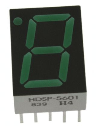 HDSP-5601-GH000 Broadcom 7-Segment LED Display, CA Green 3.1 mcd RH DP 14.2mm [HDSP-5601-GH000]; 178-3018