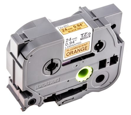 BROTHER Black on Fluorescent orange Label Printer Tape, 24 mm Width, 5 m Length [TZE-B51]; 361-2785