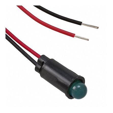 Dialight Green Indicator, 1.8 V dc, 6.4mm Mounting Hole Size, Lead Wires Termination [559-1301-007F]; 890-1910