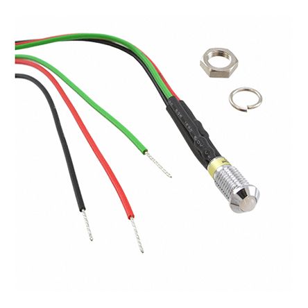 Dialight Green, Red Panel LED, 12 V dc, 6mm Mounting Hole Size, Lead Wires Termination [606-1415-130F]; 890-2399