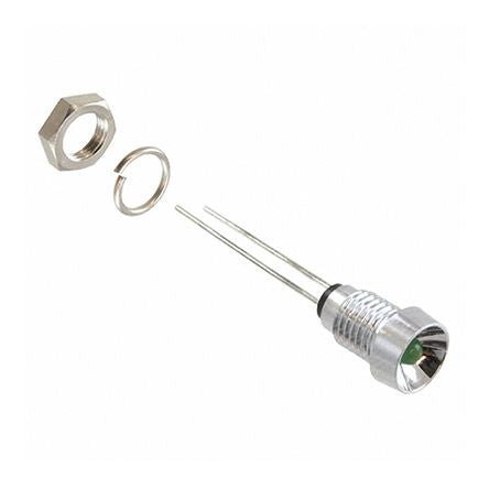 Dialight Green Panel LED, 2 V dc, 6mm Mounting Hole Size, Lead Wires Termination [606-2211-110F]; 890-2402