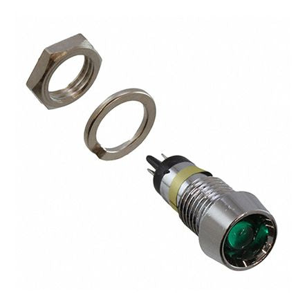 Dialight Green Panel LED, 2 V dc, 7.2mm Mounting Hole Size, Solder Termination, IP66 [607-2212-110F]; 890-2437