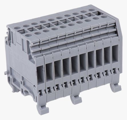 Entrelec Distribution Block, 4mm², 10 Way, 32A, 800 V, Grey [1SNA115412R0000]; 383-1598