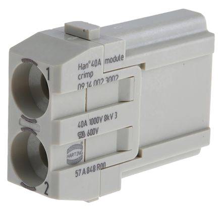 Han-Modular Series Male Module, 2 Way, 1 Row, Rated At 40A, 1 kV, Han 40A Crimp [09140023002]; 700-8092