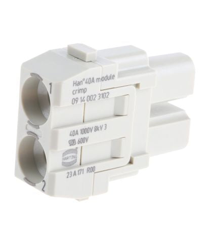 Han-Modular Series Female Module, 2 Way, 1 Row, Rated At 40A, 1 kV, Han 40A [09140023102]; 700-8102