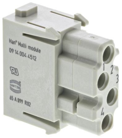 Han-Modular Series Female Module, 4 Way, Rated At 1.5A, 50 V, Han Multi DIN 41626 [09140044512]; 173-7354