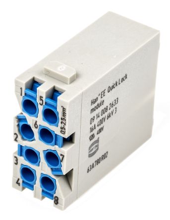 Han-Modular Series Male Module, 8 Way, Rated At 16A, 400 V, Han EE Quick Lock [09140082633]; 173-7488