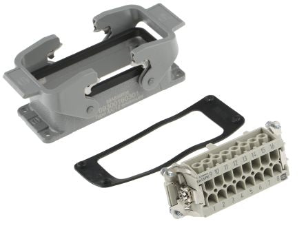 Han E Series 16 Way Female 16A Coupler Kit, includes Housing, Insert [09300160301+09330162701]; 473-1512