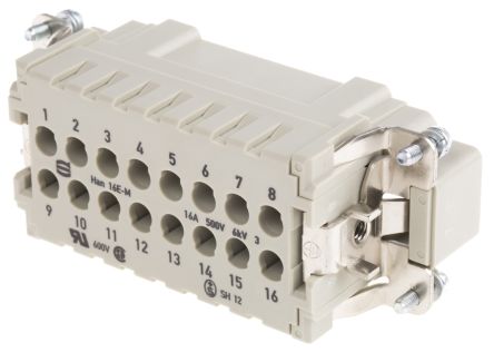Han E Series size 16 A Connector Insert, Male, 16 Way, 16A, 500 V [09330162602]; 365-1869