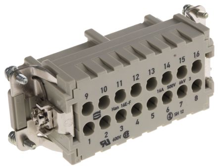 Han E Series size 16 A Connector Insert, Female, 16 Way, 16A, 500 V [0933016270202]; 365-1875