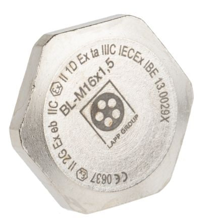 Lapp ATEX M16 Blanking Plug, Nickel Plated Brass, Threaded, IP68 [52103113]; 664-4549