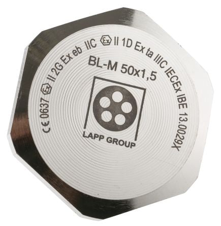 Lapp ATEX M50 Blanking Plug, Nickel Plated Brass, Threaded, IP68 [52103163]; 664-4552