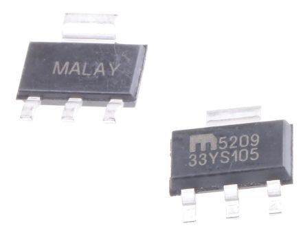 Microchip MIC5209-3.3YS, LDO Regulator, 500mA, 3.3 V, ±2% 3+Tab-Pin, SOT-223 [MIC5209-3.3YS]; 165-4099
