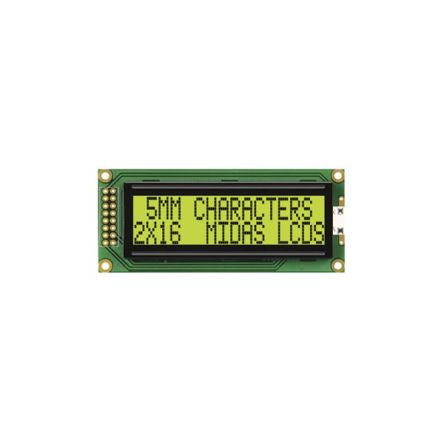 Midas MC21605F6WE-SPTLY F Alphanumeric LCD Display Yellow-Green, 2 Rows by 16 Characters, Transflective [MC21605F6WE-SPTLY]; 171-1677