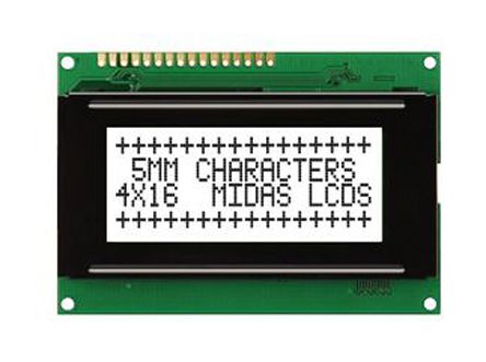 Midas MC41605A6W-FPTLW-V2 A Alphanumeric LCD Display White, 4 Rows by 16 Characters, Transflective [MC41605A6W-FPTLW-V2]; 135-9749