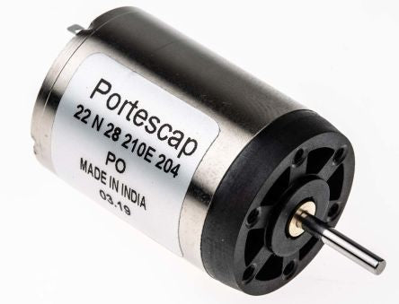 Portescap DC Motor, 3.8 W, 12 V dc, 7.3 mNm, 5900 rpm, 2mm Shaft Diameter [22N28-210E.204]; 718-975