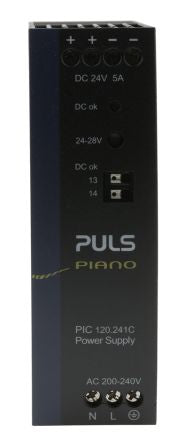 PULS, PIANO DIN Rail Power Supply, 24V dc Output Voltage, 5A Output Current [PIC120.241C]; 123-8019