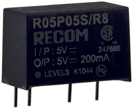Recom 1W Isolated DC-DC Converter Through Hole, Voltage in 10.8 → 13.2 V dc, Voltage out 15V dc [R12P15S/R8]; 733-0995