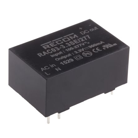 Recom, 3W Embedded Switch Mode Power Supply SMPS, 3.3V dc, Encapsulated [RAC03-3.3SE/277]; 901-1438