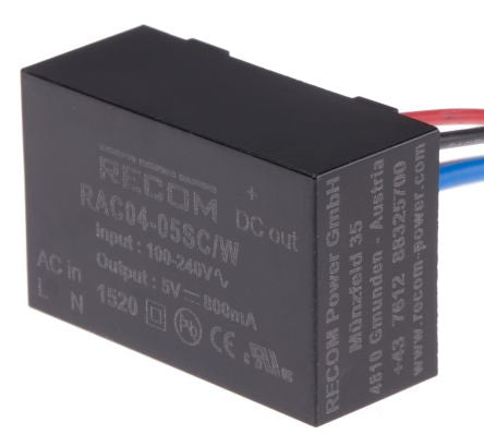 Recom, 4W Embedded Switch Mode Power Supply SMPS, 5V dc, Encapsulated [RAC04-05SC/W]; 843-2001