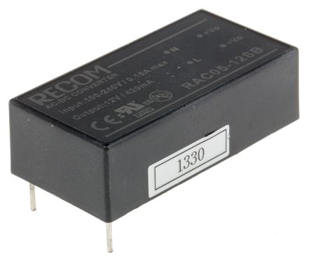 Recom, 5W Embedded Switch Mode Power Supply SMPS, 12V dc, Encapsulated [RAC05-12SB]; 193-323