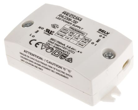 Recom RACD06-700, Constant Current / Constant Voltage LED Driver 6W 2.5 → 12V 700mA [RACD06-700]; 737-7063