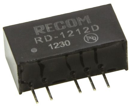 Recom RD 2W Isolated DC-DC Converter Through Hole, Voltage in 10.8 → 13.2 V dc, Voltage out ±12V dc [RD-1212D]; 166-6539