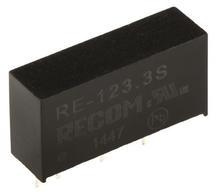 Recom RE 1W Isolated DC-DC Converter Through Hole, Voltage in 10.8 → 13.2 V dc, Voltage out 3.3V dc [RE-123.3S]; 672-8827