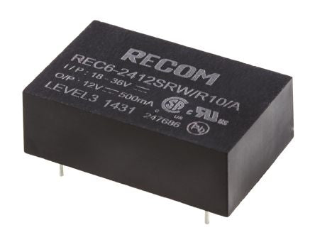 Recom REC6 6W Isolated DC-DC Converter Through Hole, Voltage in 18 → 36 V dc, Voltage out 12V dc [REC6-2412SRW/R10/A]; 166-6481