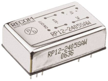 Recom RP12 AW 12W Isolated DC-DC Converter Through Hole, Voltage in 9 → 36 V dc, Voltage out 15V dc [RP12-2415SAW]; 843-9478