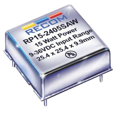 Recom RP15 AW 15W Isolated DC-DC Converter Through Hole, Voltage in 9 → 36 V dc, Voltage out ±15V dc [RP15-2415DAW]; 828-9337