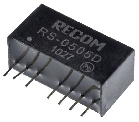 Recom RS 2W Isolated DC-DC Converter Through Hole, Voltage in 4.5 → 9 V dc, Voltage out ±5V dc [RS-0505D]; 473-5227