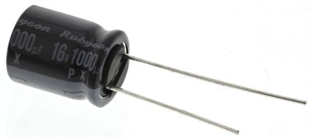 Rubycon 1000μF 16V dc Aluminium Electrolytic Capacitor, Through Hole 10 x 12.5mm +105°C 10mm 5mm [16PX1000MEFC10X12.5]; 766-0107